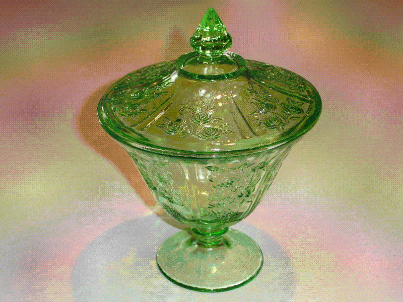 Look through the pictures provided below of the different green depression glass patterns.  When you find your pattern, click on the name of the pattern to find out more.