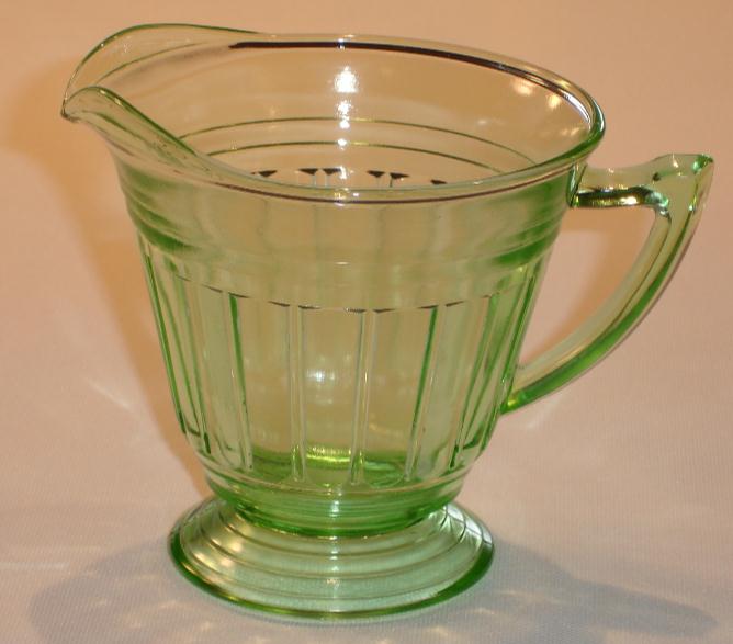 ByDepGlassOne type of shakers were made in the Cloverleaf pattern. They are footed and have the cloverleaf pattern running in a band around the center of the shaker. The production colors were green, yellow, and black. The yellow colored shakers are one of the most rare pieces in this pattern.