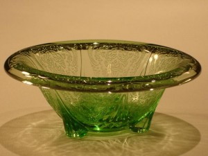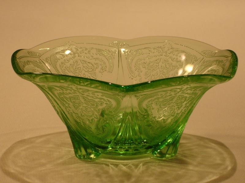 Royal Lace Candlesticks were made in three different types: the rolled edge, the straight, and the ruffled edge. All candlestick types are five inches in diameter, and were made in the colors cobalt blue, green, pink, and crystal. The rolled edge candlesticks were also made in the color amethyst which is the most rare.