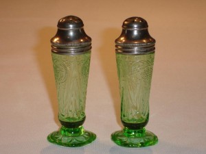 ByDepGlassOne type of butter dish was made in the New Century pattern. It has a separate base and lid. The diameter of the base is six and one-half inches. With the lid on top of the base, the whole butter dish stands four and three-fourths inches tall. It was made in the colors green and…