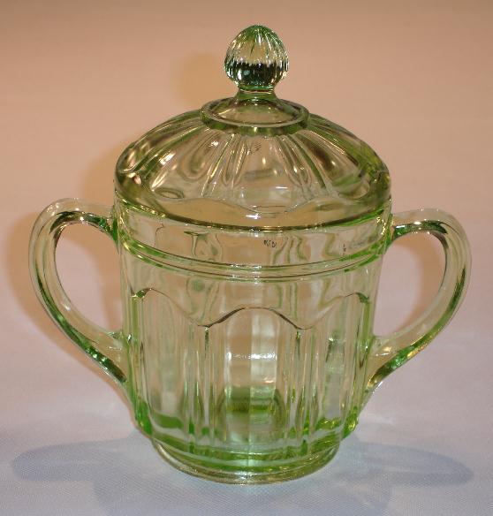 ByDepGlassThe Circle creamer is footed and was made in the colors green and pink. It stands four and one-quarter inches tall and has a diameter of two and seven-eighths inches.