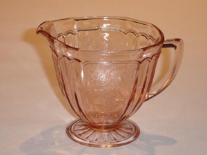 ByDepGlassTwo different cake plates were made in the Cameo Ballerina pattern. The three legged cake plate has a ten inch diameter and was made in the color green. The flat cake plate has a ten and one-half inch diameter and was made in the colors green and pink. This piece is could also considered as…