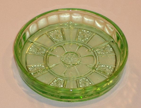 ByDepGlassThe Doric handled tray is round, and was made in the colors pink and green. The tray has a diameter of ten inches — if measured without including the handles — or a diameter of twelve and one-half inches if measured with the handles.