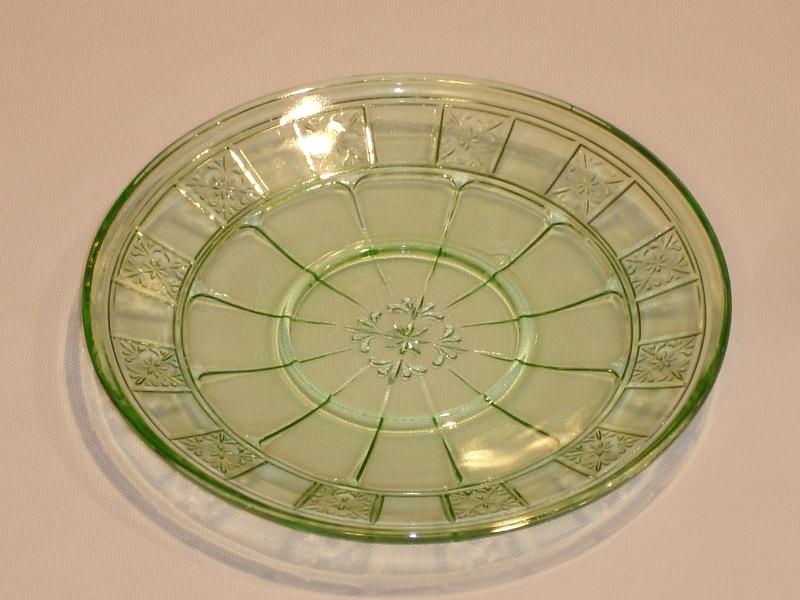 ByDepGlassThere are four plates in the Doric pattern. The sherbet plate has a diameter of six inches. The salad plate has a diameter of seven inches. The dinner plate is nine inches in diameter, and comes in a serrated version, which is the rarest of all the Doric plates. The grill plate is also nine inches…